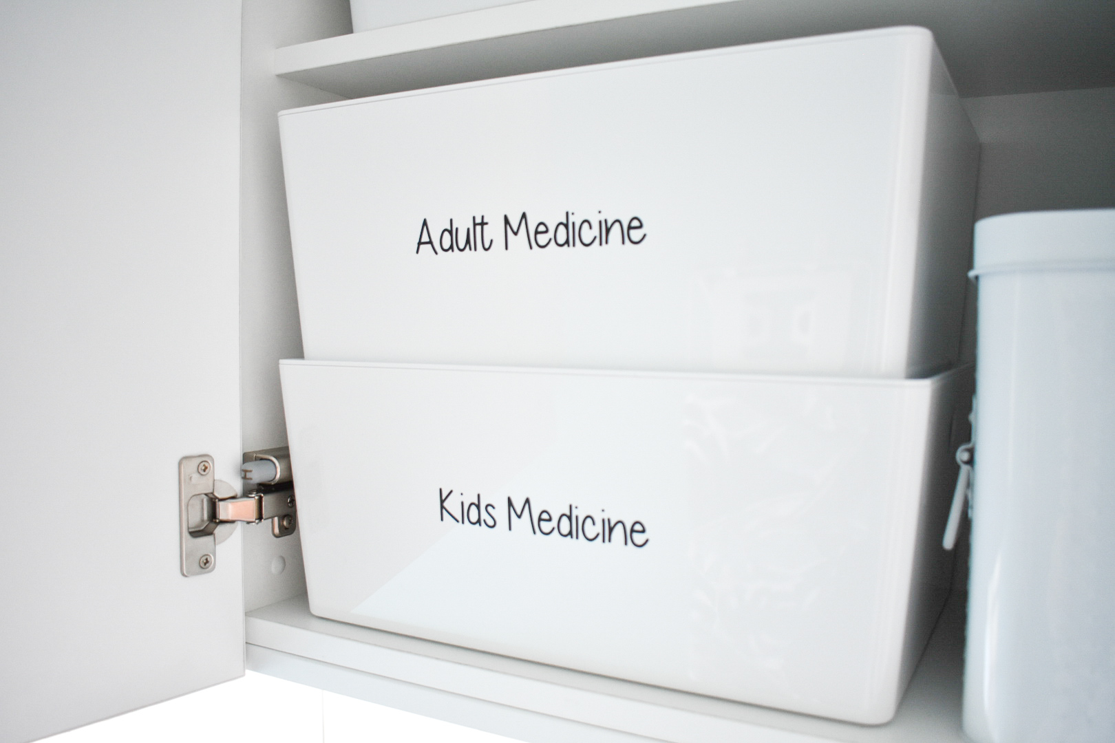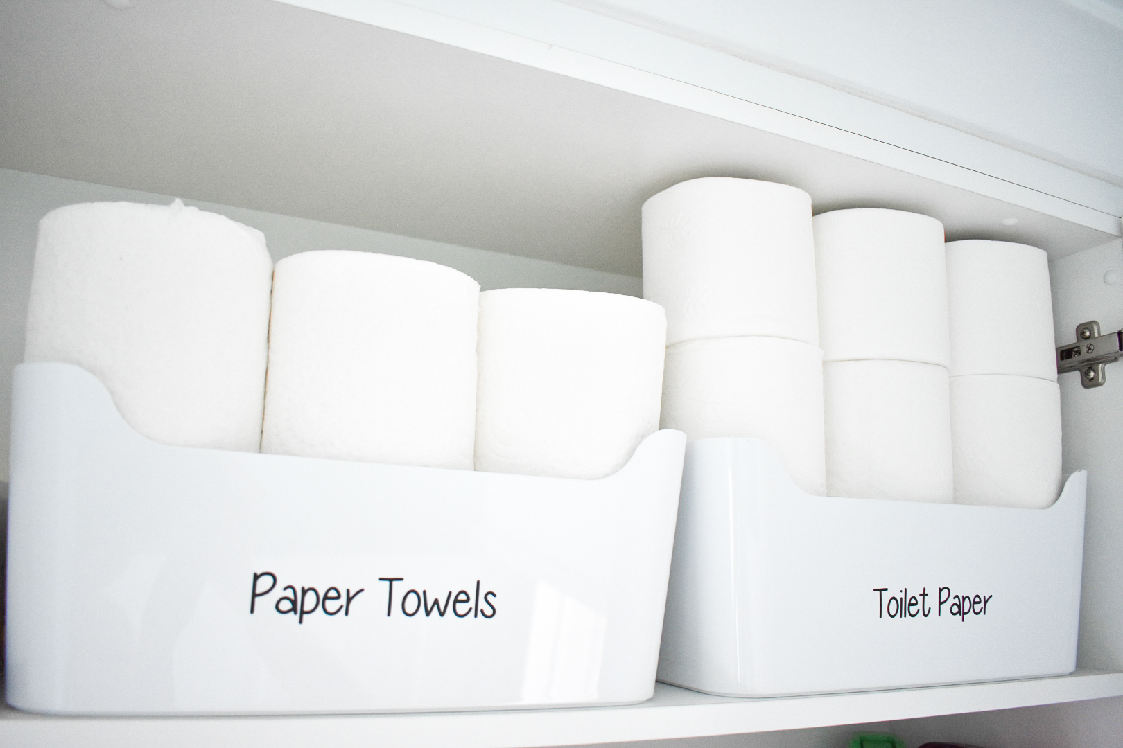 I placed everything into categories to see how many boxes/containers I needed, then went shopping. Mostly at Ikea for the white Variera box range.