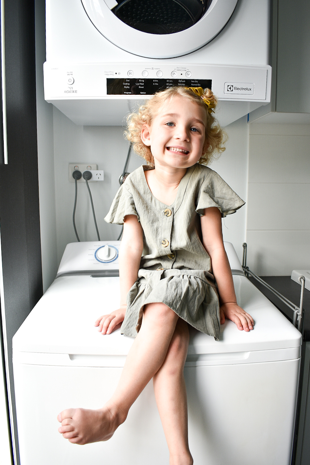 The laundry WAS my least liked room in the house, mostly because it’s filled with washing 100% of the time. It’s the one chore that just never ends. No matter how quick you are at folding and putting away (and let me promise you I am not very quick) you can never NEVER be on top of it, unless you become a nudist maybe… Now there’s a food for thought!