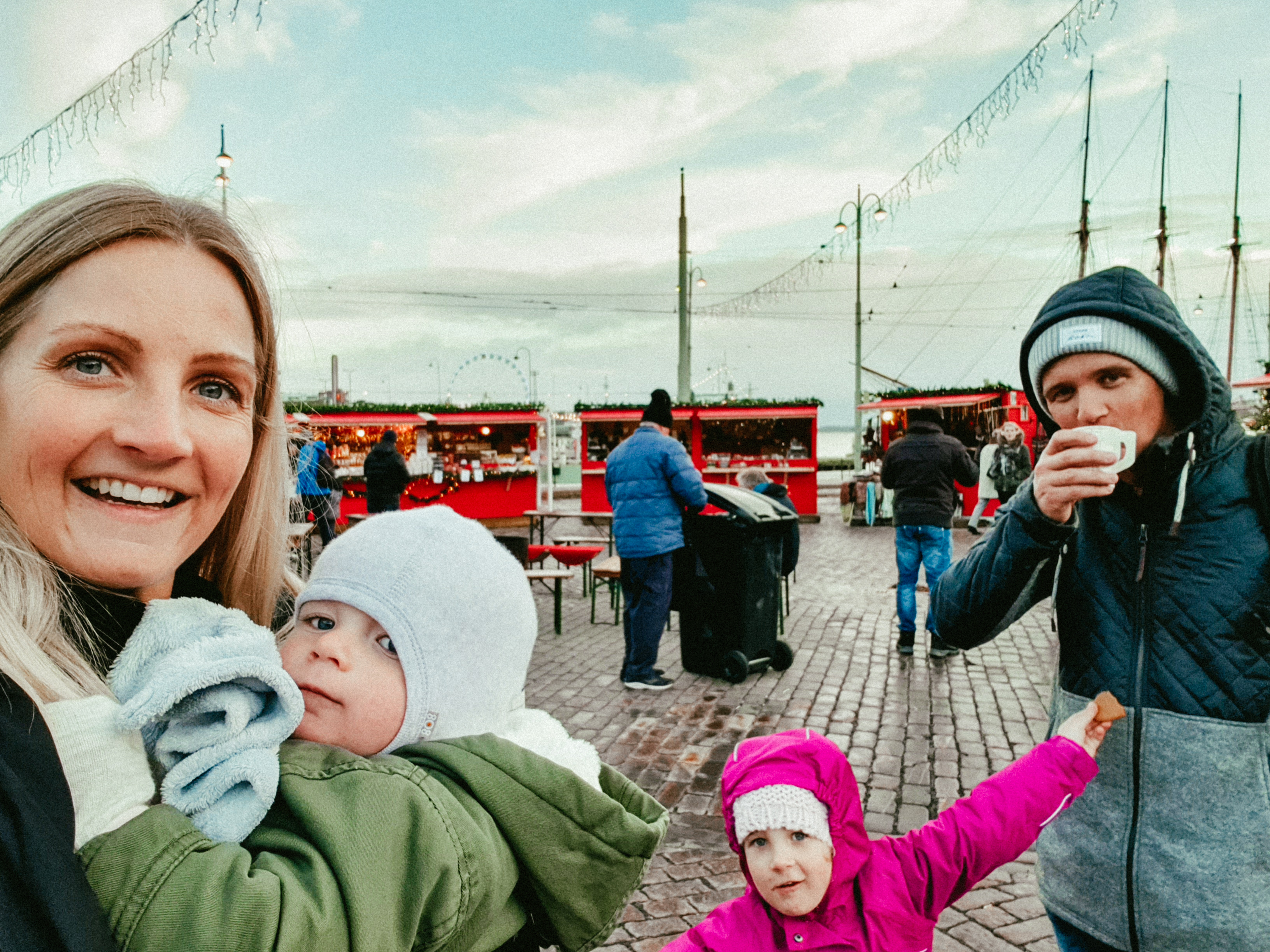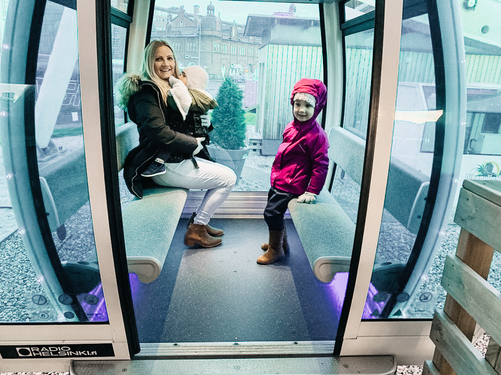 We then walked to see the Helsinki Cathedral which was a stunning building. At the bottom of the stairs next to the Cathedral the Christmas markets were set up but unfortunately were not open on a Monday! But we did find some other Christmas markets near the harbour, where we stopped for a hot cup of GlĆøgg (mulled wine). We then spotted the Sky Wheel and thought it be a great opportunity to see Helsinki from above, and what a beautiful view it was. Both kids really enjoyed it too, we spotted a few locals swimming in the outdoor swimming pools next door in the freezing cold! Then finished the day with a hot dog and chips on our way back to the hotel.