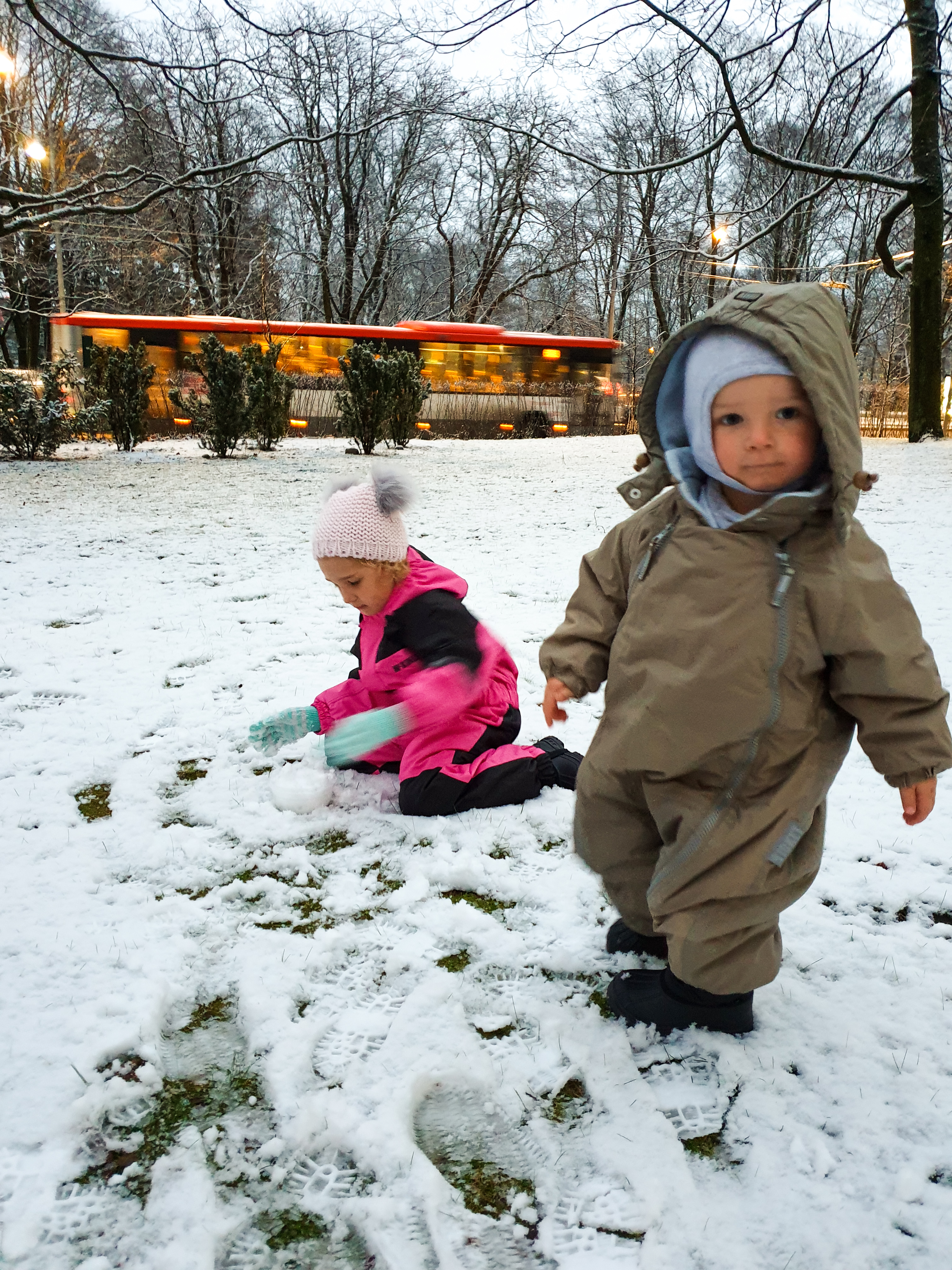 We started the day having breakfast by the restaurant windows watching the snow still falling. Liana just wanted to run out and feel it, which she did and brought some in for Luca to feel too. We quickly got all our snow clothes on and went out to play right at the front of the hotel. We spent most the day in the snow and then walked into the city, enjoyed the Christmas lights and markets and finished the day off with a swim in the hotel pool.