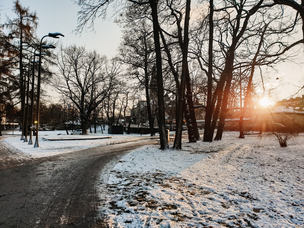 Watching the snow fall for the first time at 2 am in Helsinki