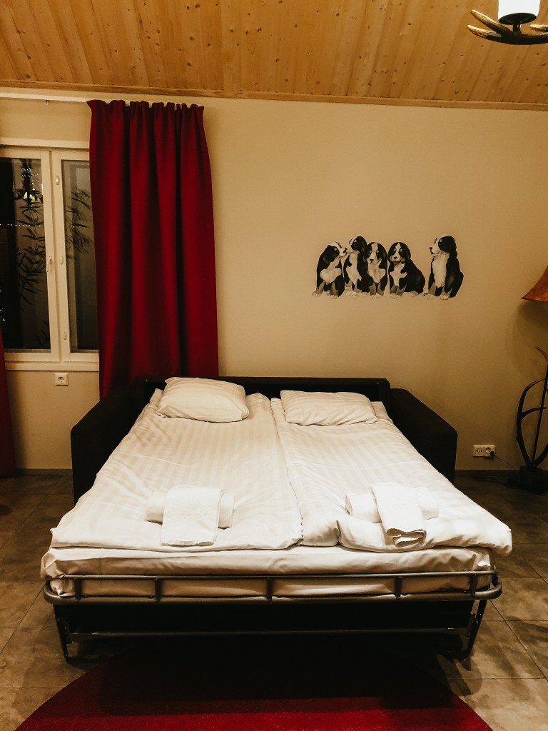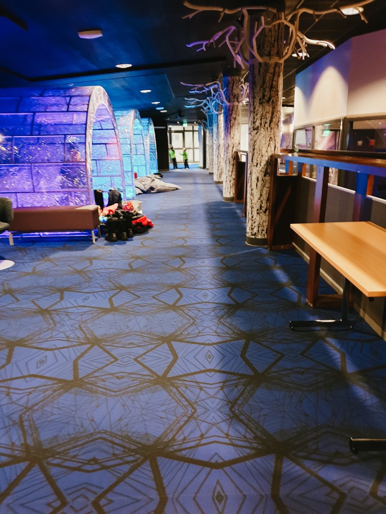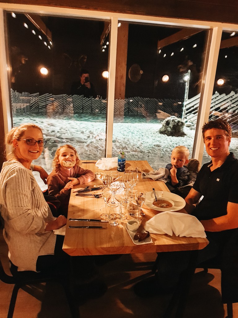 We stayed in the Moss Suite and it was such a great room, the most practical room we had for the kids during our travel. It was a huge space including a sauna. We used the fold out couch for Liana and cot for Luca. It also had a balcony which we saw the northern lights from, and a self contained kitchen. Once again we had breakfast included which had a huge selection to choose from and there were plenty of choices for dinner too.