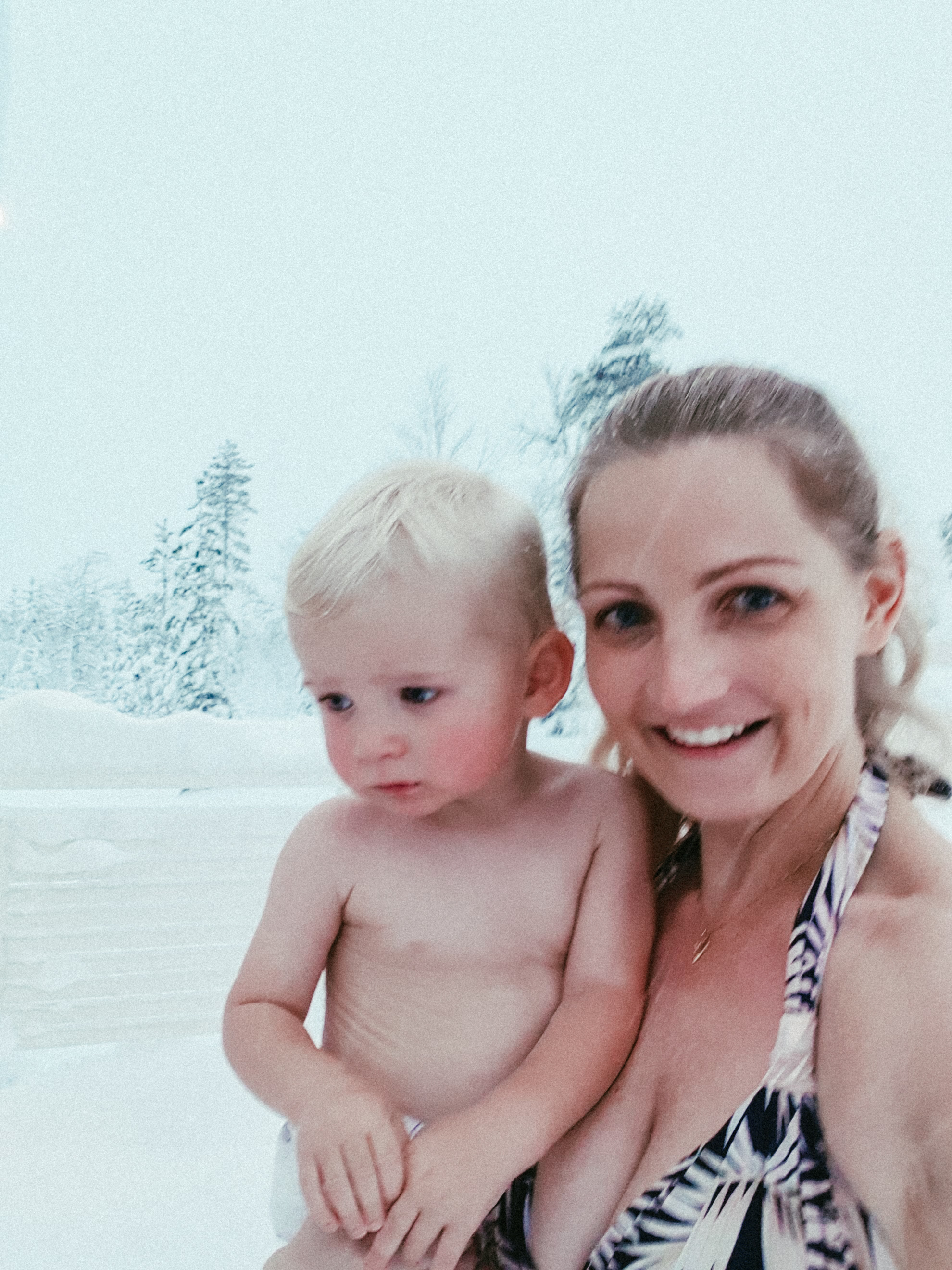 The Northern Lights Ranch is like no other place I’ve ever been, truly magical surrounded by knee deep fresh white fluffy snow. We booked the Sky View Cabin Deluxe with outdoor Jacuzzi, which also has an extra little sitting room with a couch which can be made into another bed that Liana slept on and then we had a cot for Luca. The rooms are simple and basic but feel like luxury at the same time.