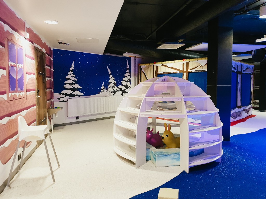 It is a kid friendly hotel and provided a cot for Luca which is a big tick for us travelling with children because it means we can contain him when needed! It also has a play room in the eating area where breakfast is served which meant we were able to take our time and relax a little at breakfast. It has a pool and sauna which was great for some indoor activities during winter. There are also strollers available to borrow while staying and directly across the road is a park with a playground too.