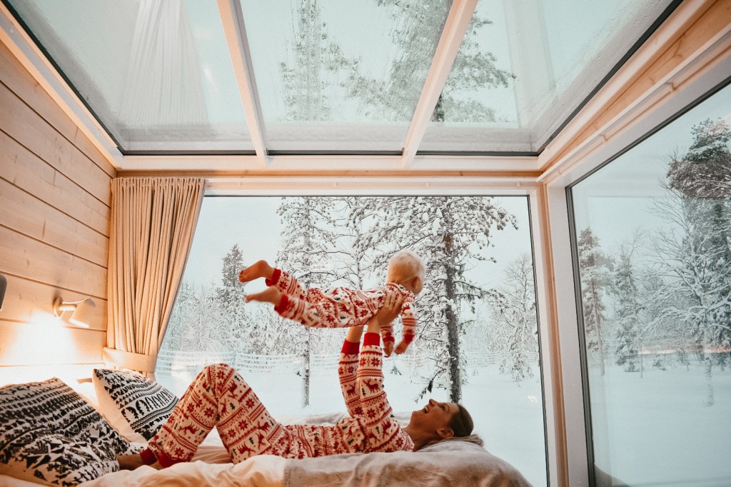 We stayed at the Ranch for 2 nights, it’s the kind of place you go to relax and reset. There were mostly couples there which is to be expected, but we did see a few other families with children. All the cabins have a heated glass roof which means you can see straight through to the sky, the stars and fingers crossed the northern lights. Unfortunately the skies were not clear and it was snowing the whole time for our stay, but that didn’t dampen our time in this magical place.