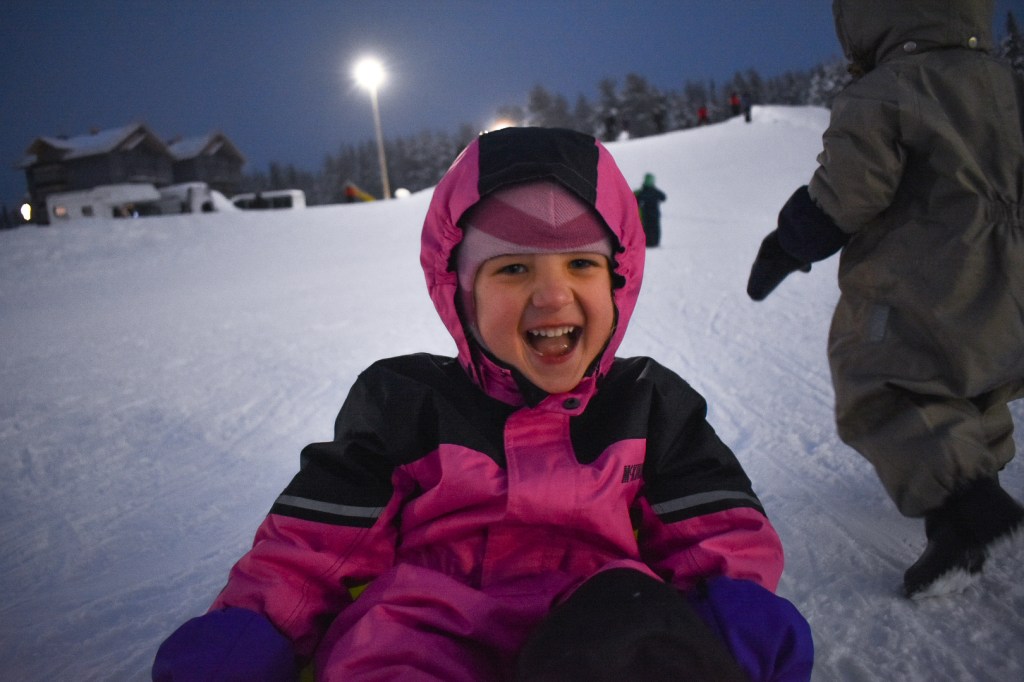 Arriving and getting off the train in Rovaniemi was awesome. Stepping straight out into the snow, both kids excited to be playing in it,