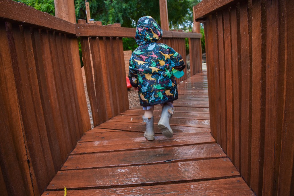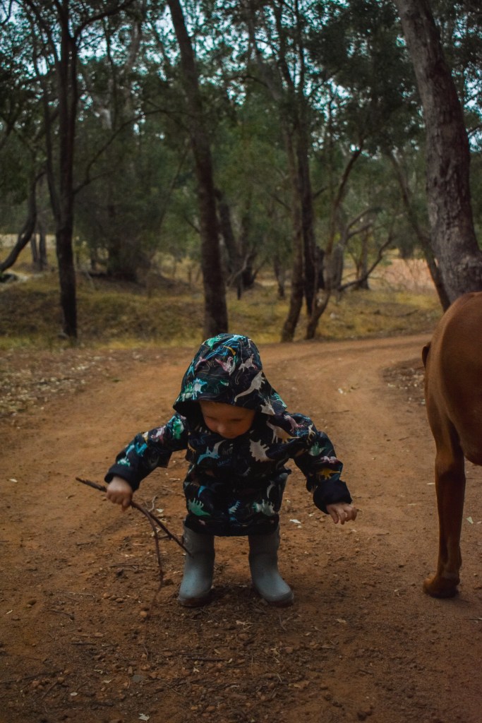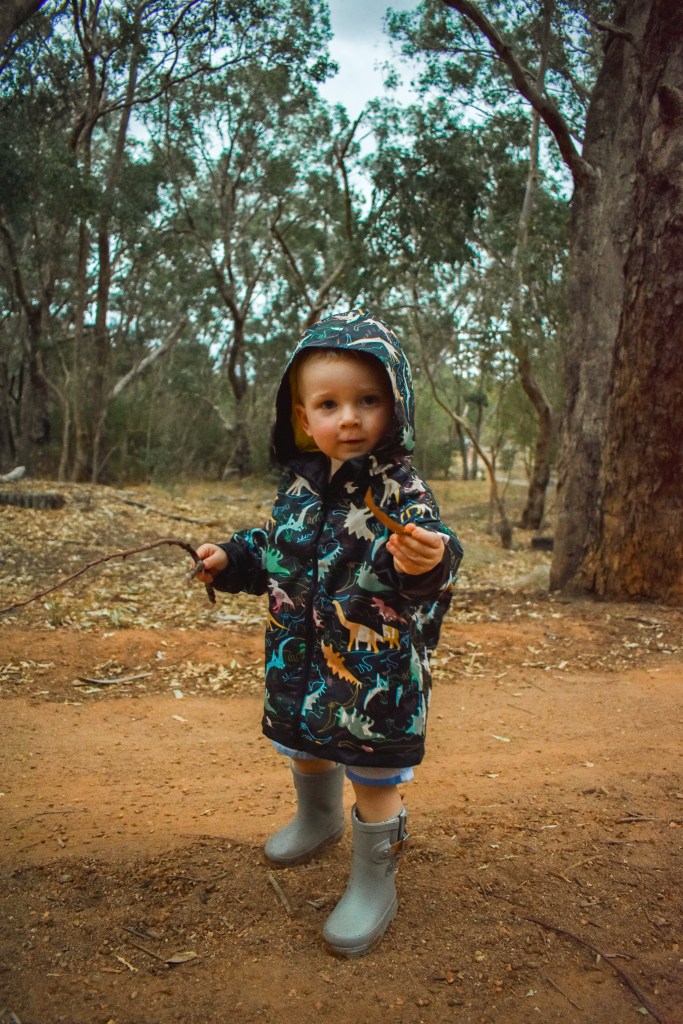 Yesterday afternoon we had been locked inside all day and needed fresh air. We decided to go somewhere, where the kids could run free and not be at a crowded playground, it was raining and dinner time which made it even quieter. We went for a stroll through the bush and just let the kids explore plus we (parents) had a good walk too.