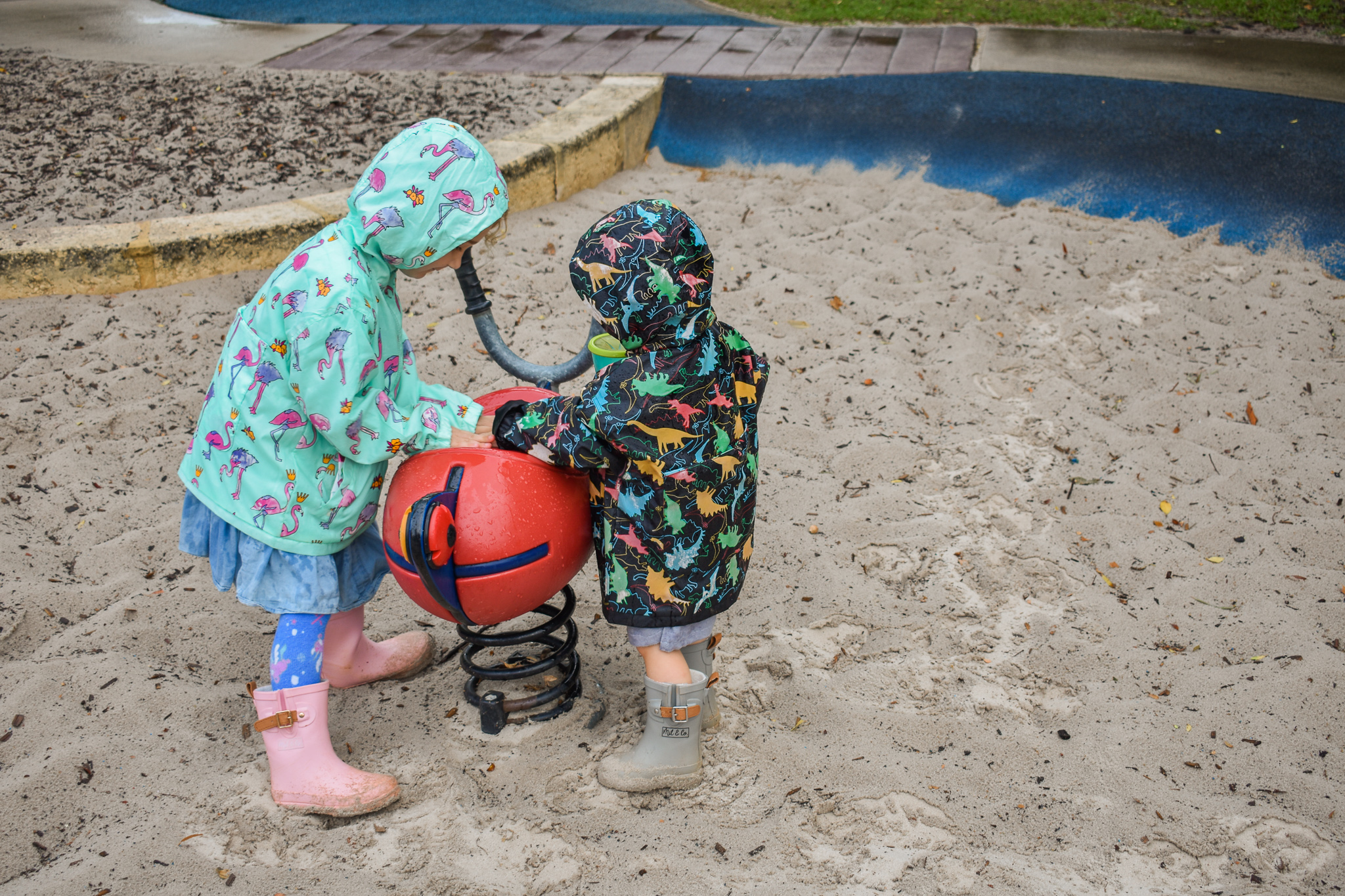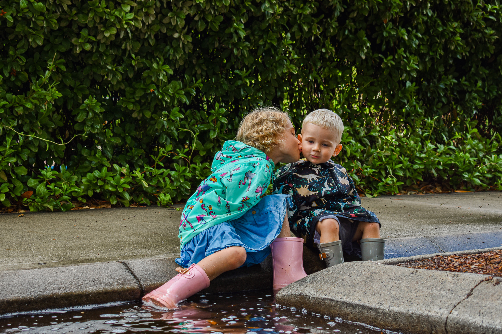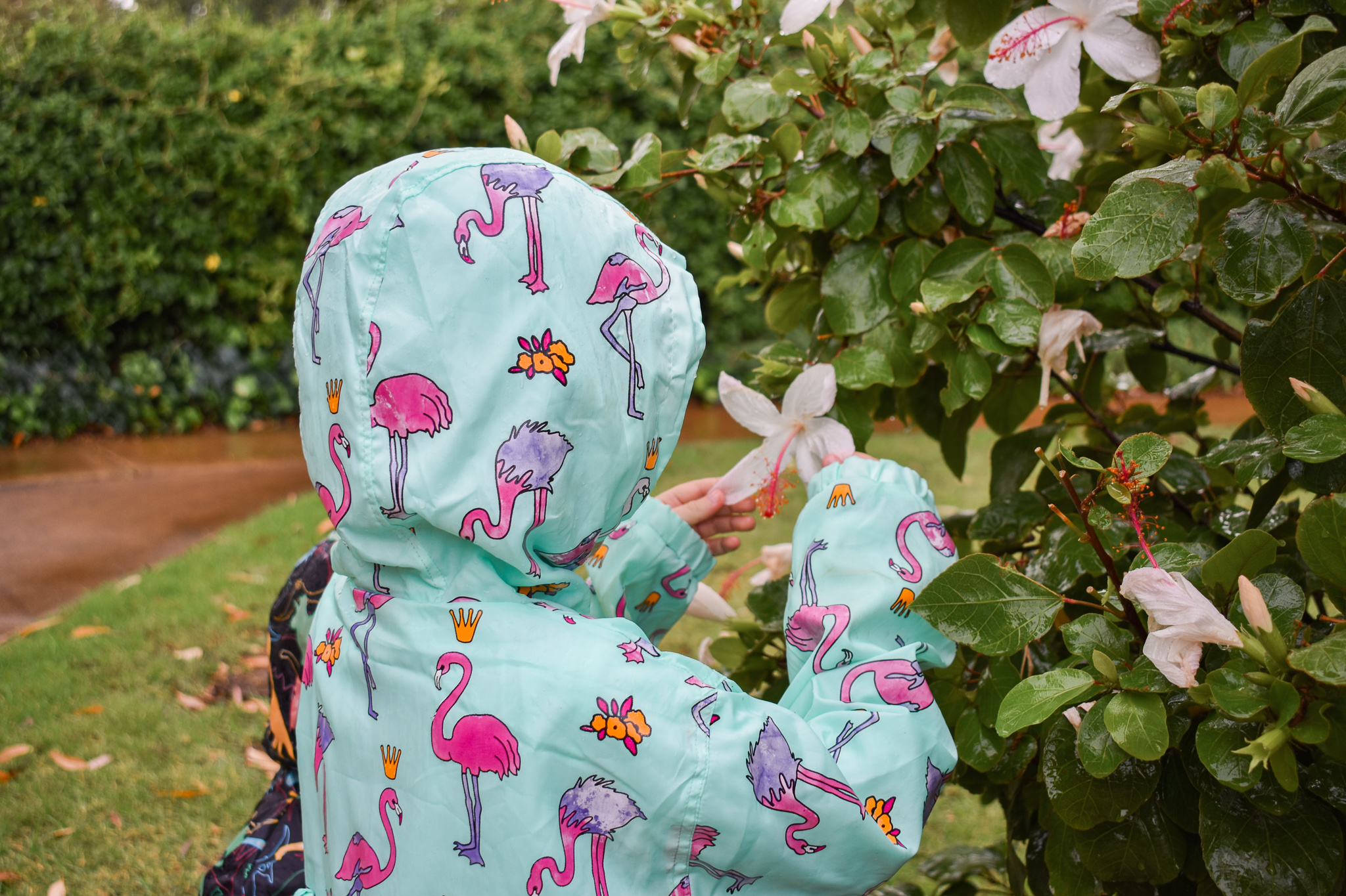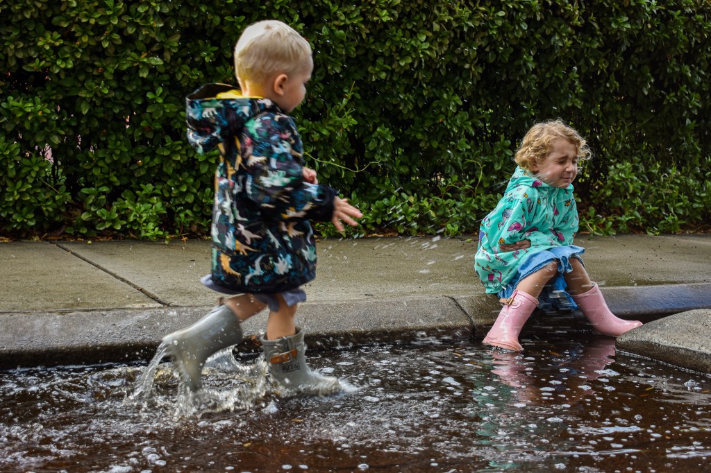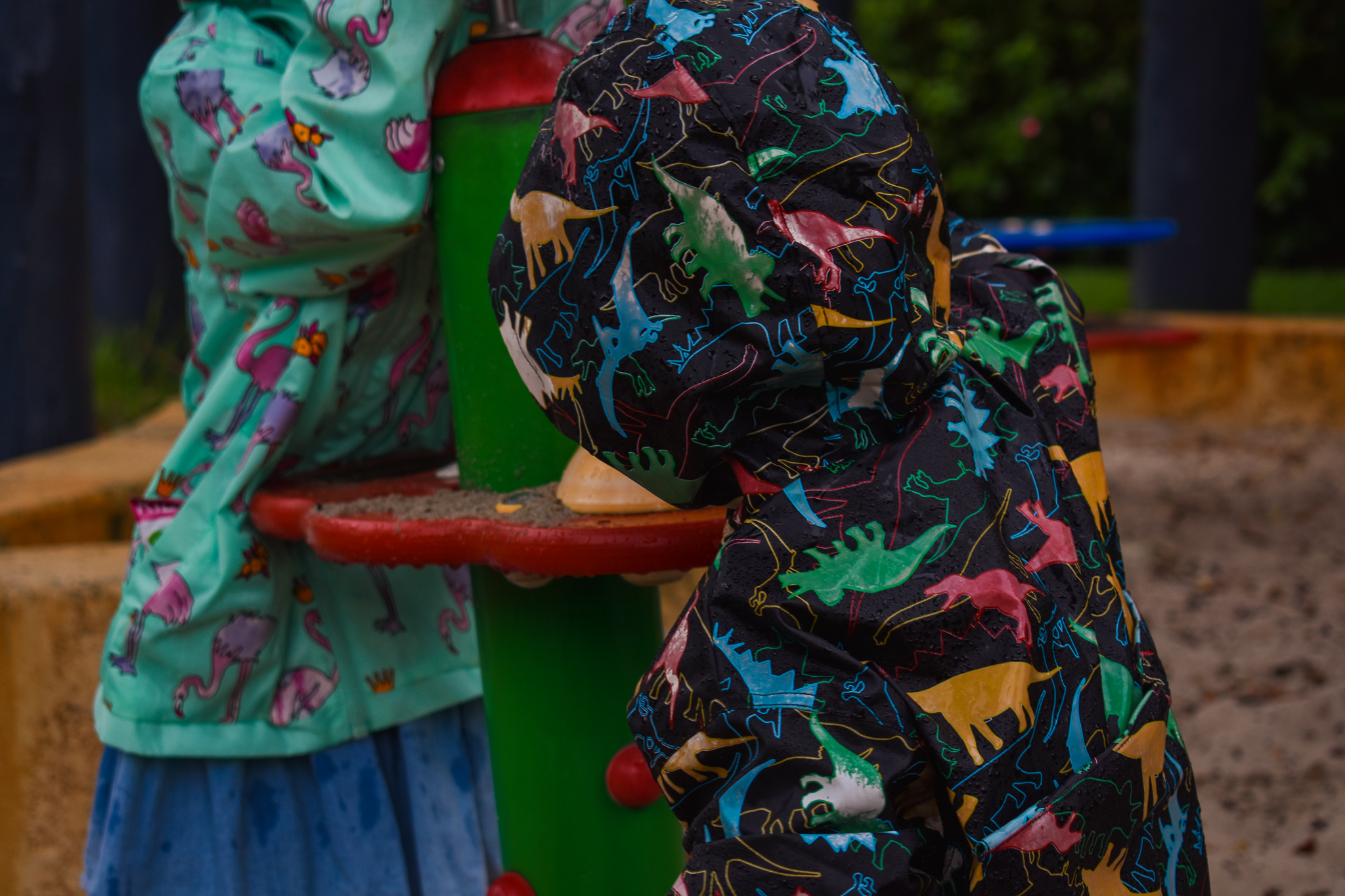 We have actually been waiting for the rain and when it comes we go running out the door to see the colour appear on these rain jackets.