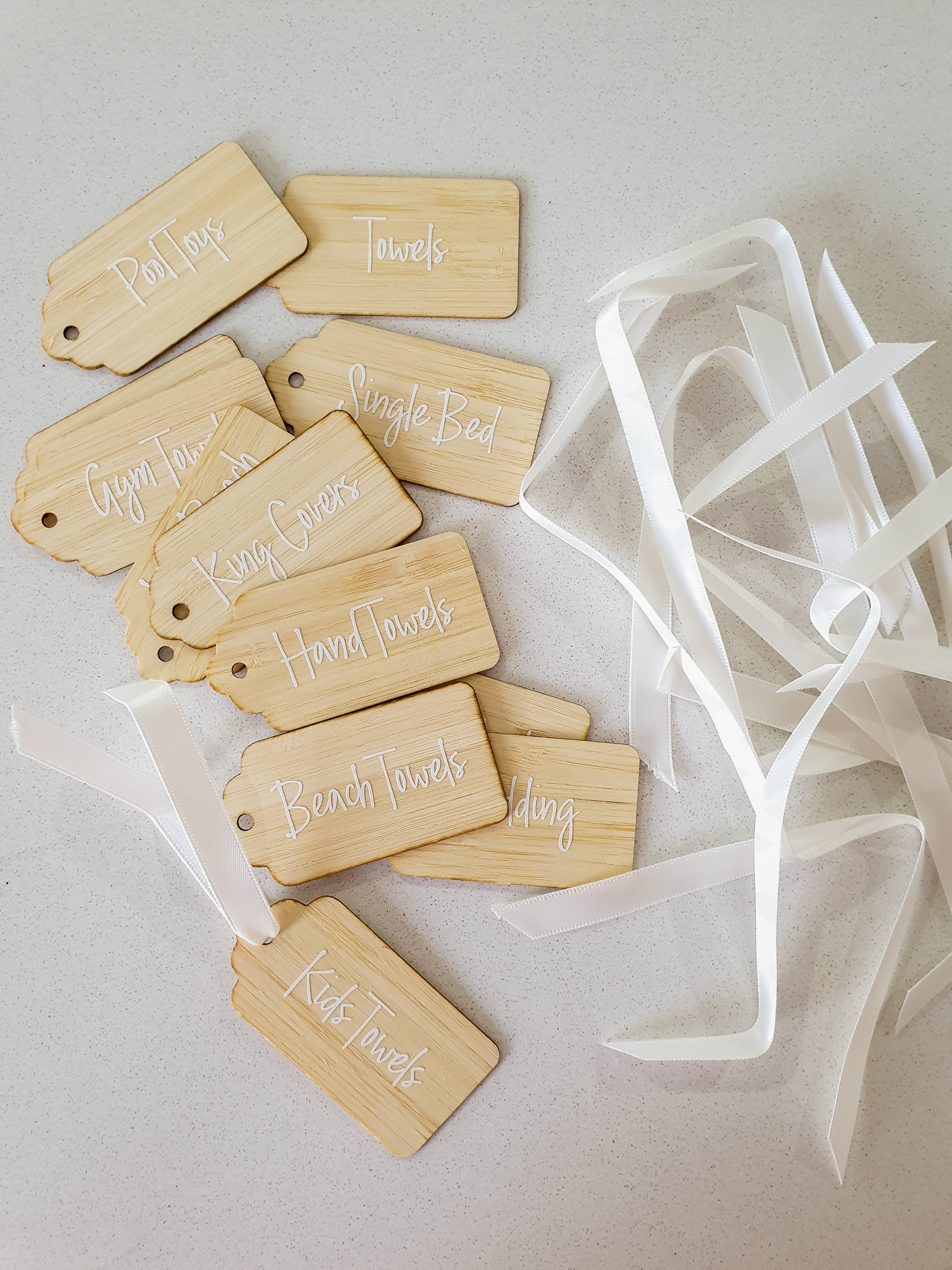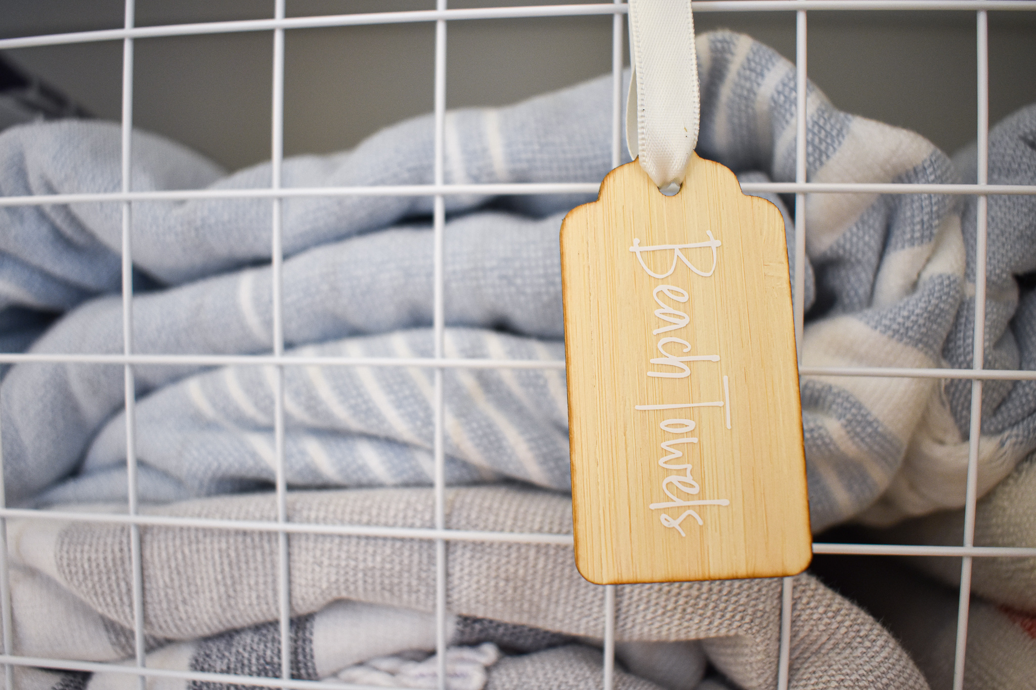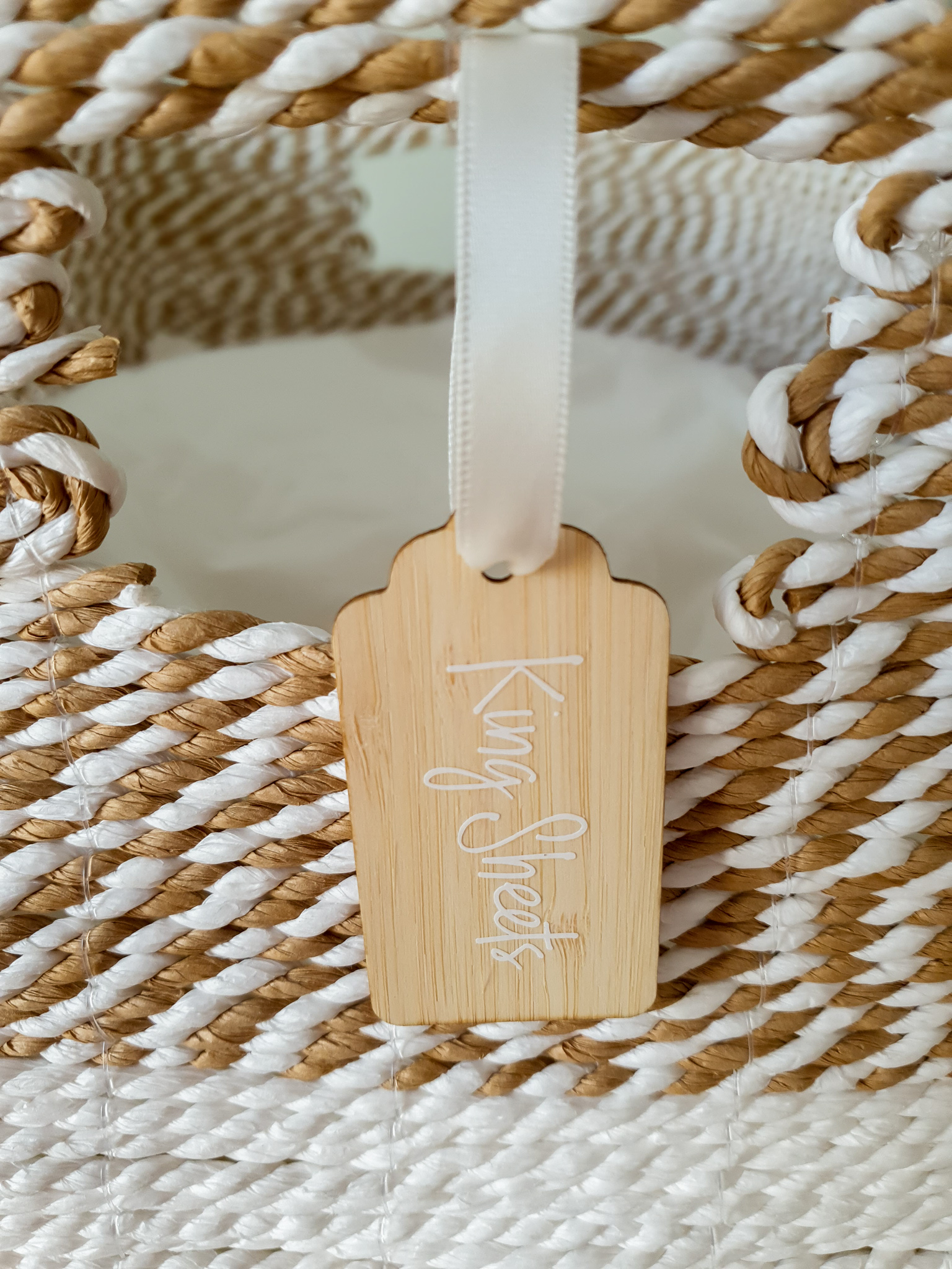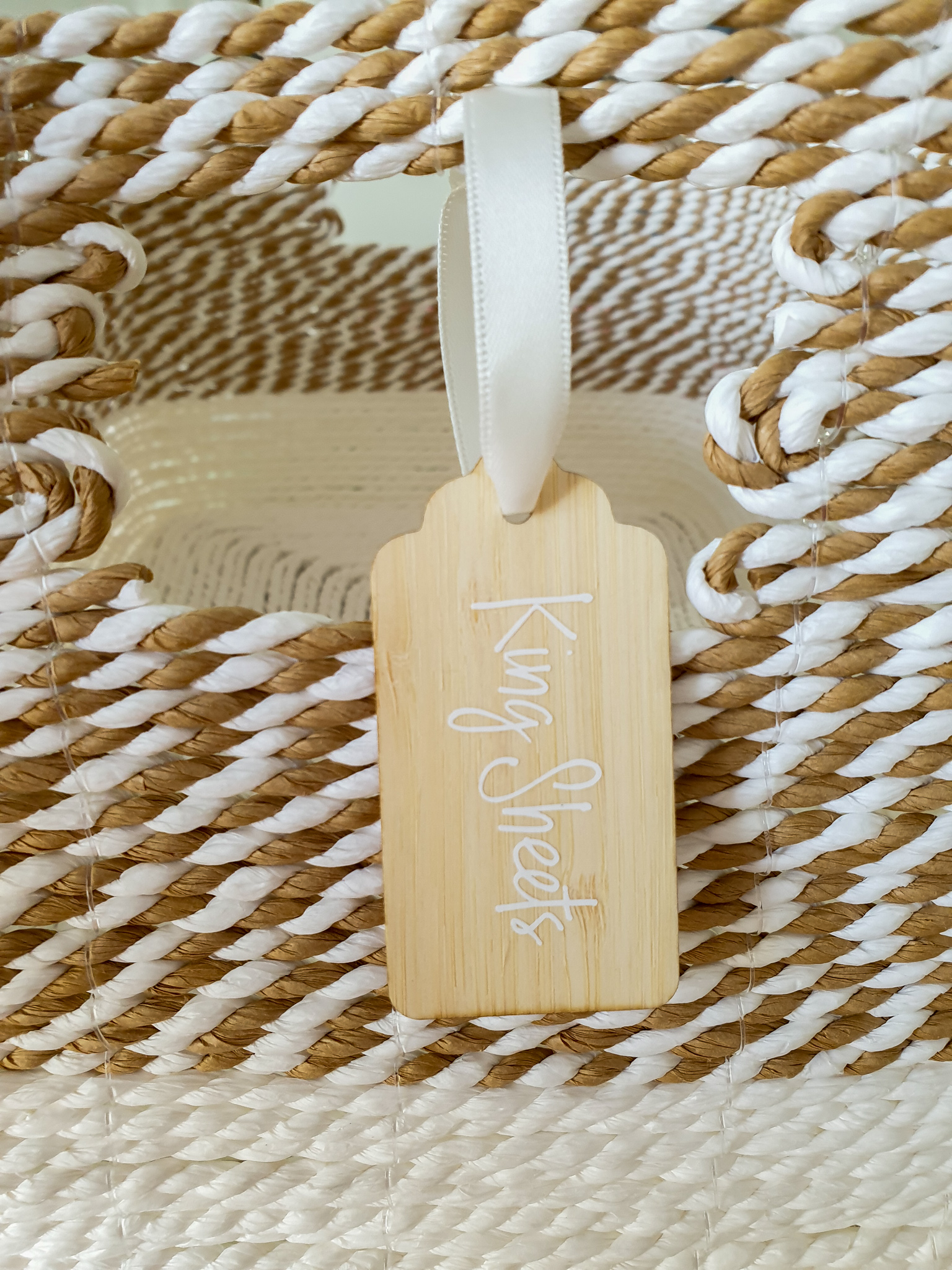 I chose her pretty new little bamboo tags, this way I could tie them onto the baskets and have them all look the same.