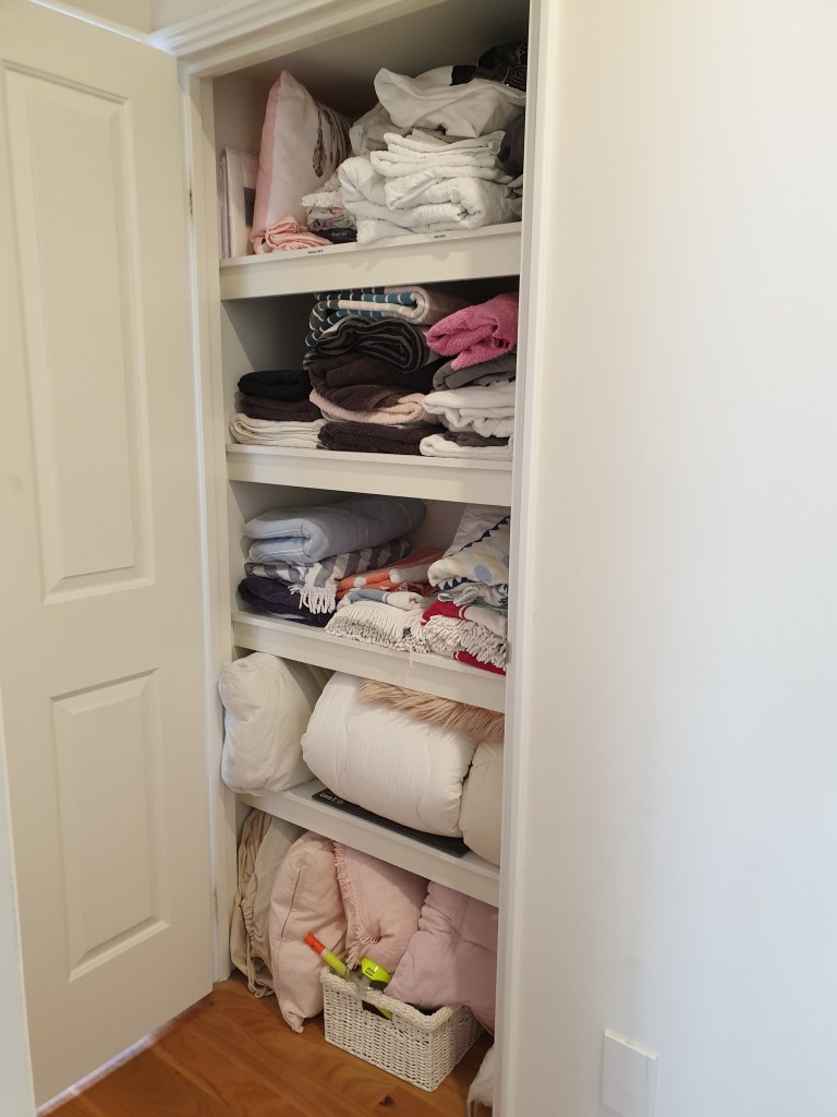 Secondly, I go through my mum’s linen cupboard which is what I call a luxury linen cupboard. You can actually walk inside it and have a huge amount of storage space, every organisers dream cupboard (well mine anyway).
