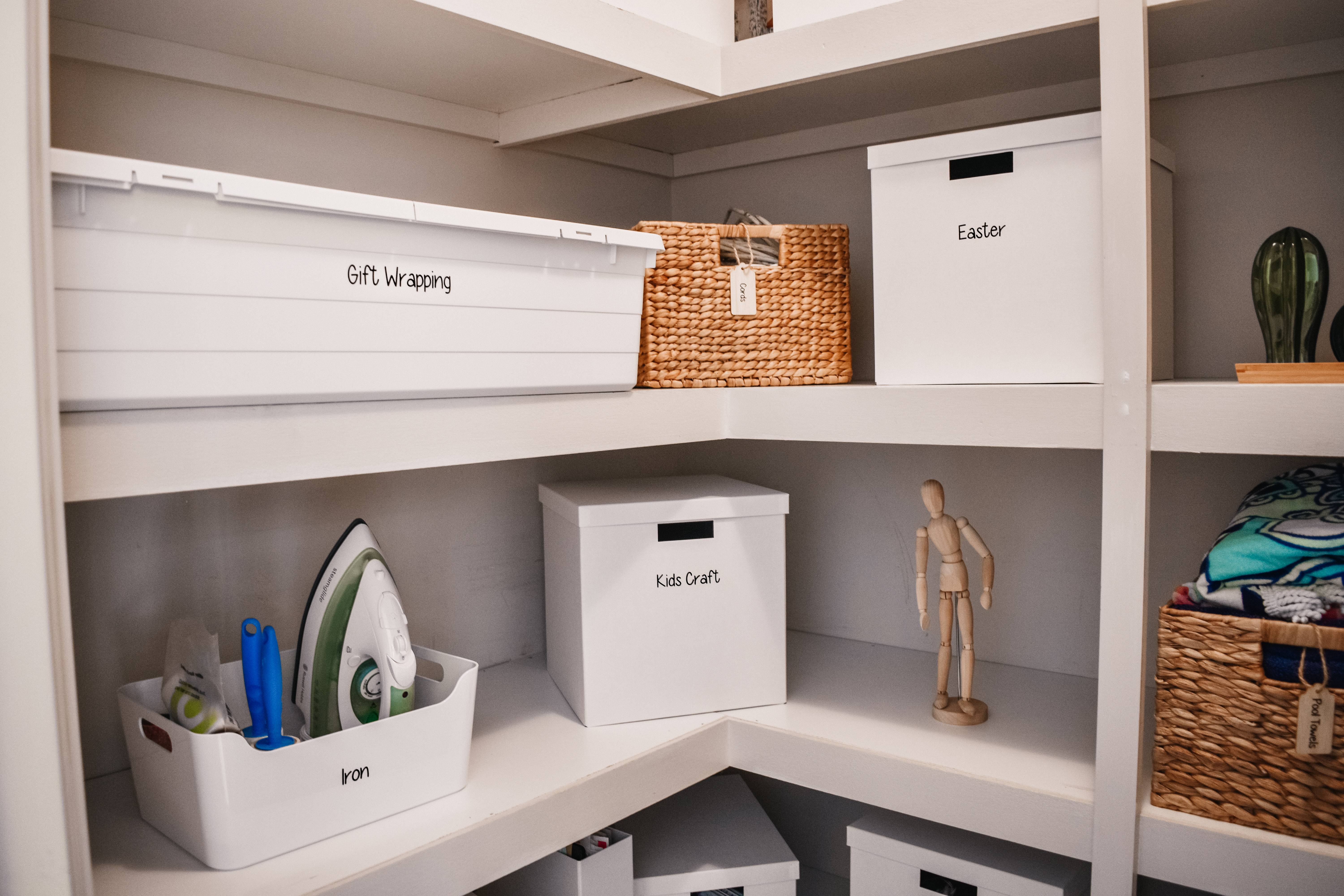 We also used Kmart open baskets for everyday items like towels etc for easy access.