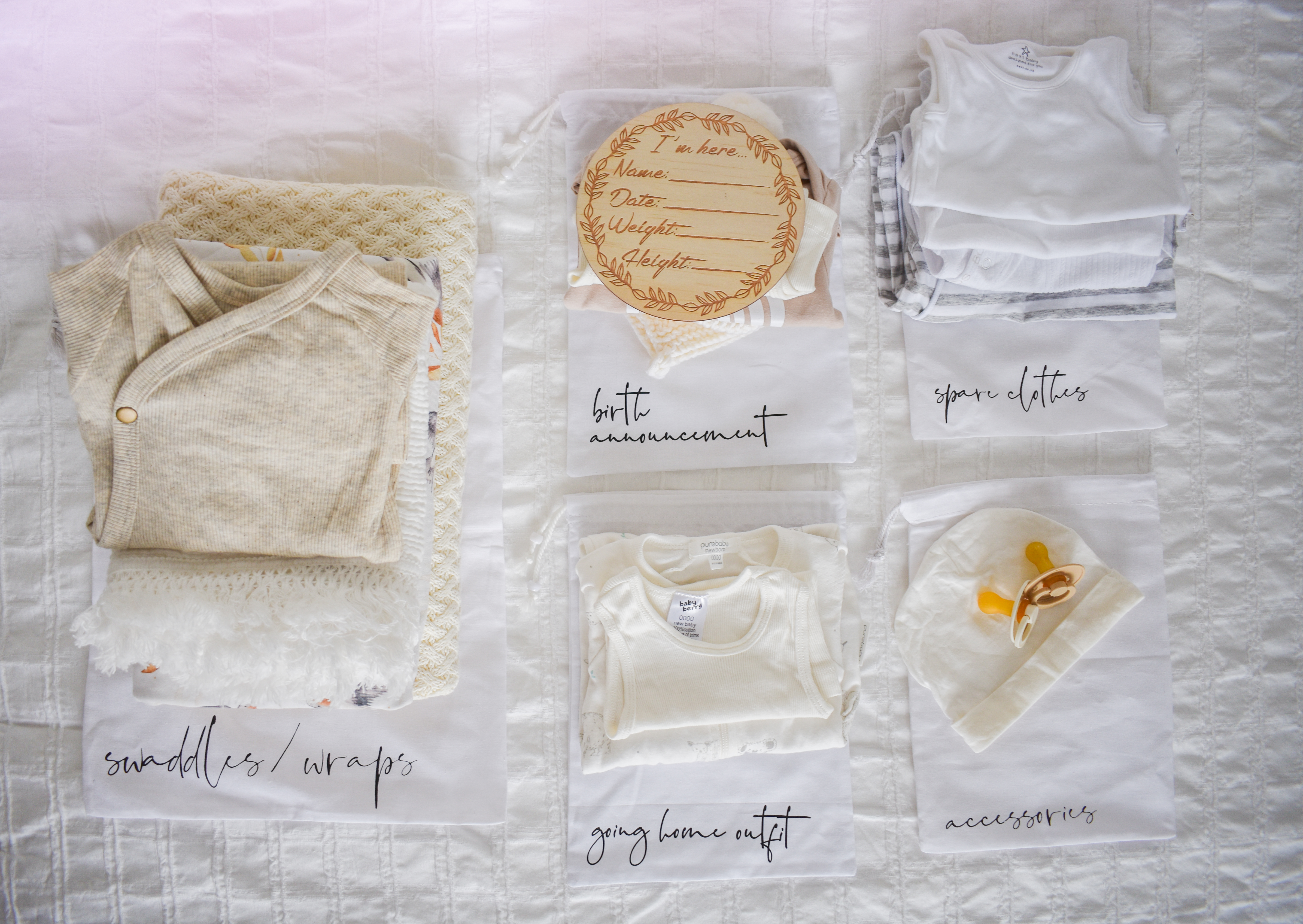 This time around I bought some little individual bags to organize the baby’s clothes. This way hubby or the nurse is able to just grab the little bag and dress baby. It also made it easier to pack everything for the baby.