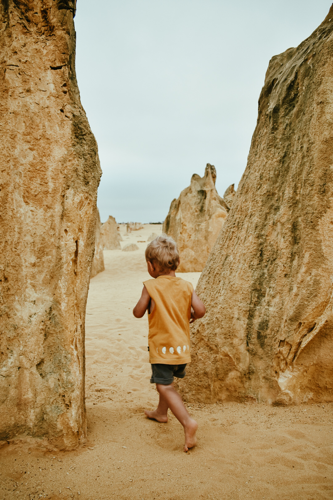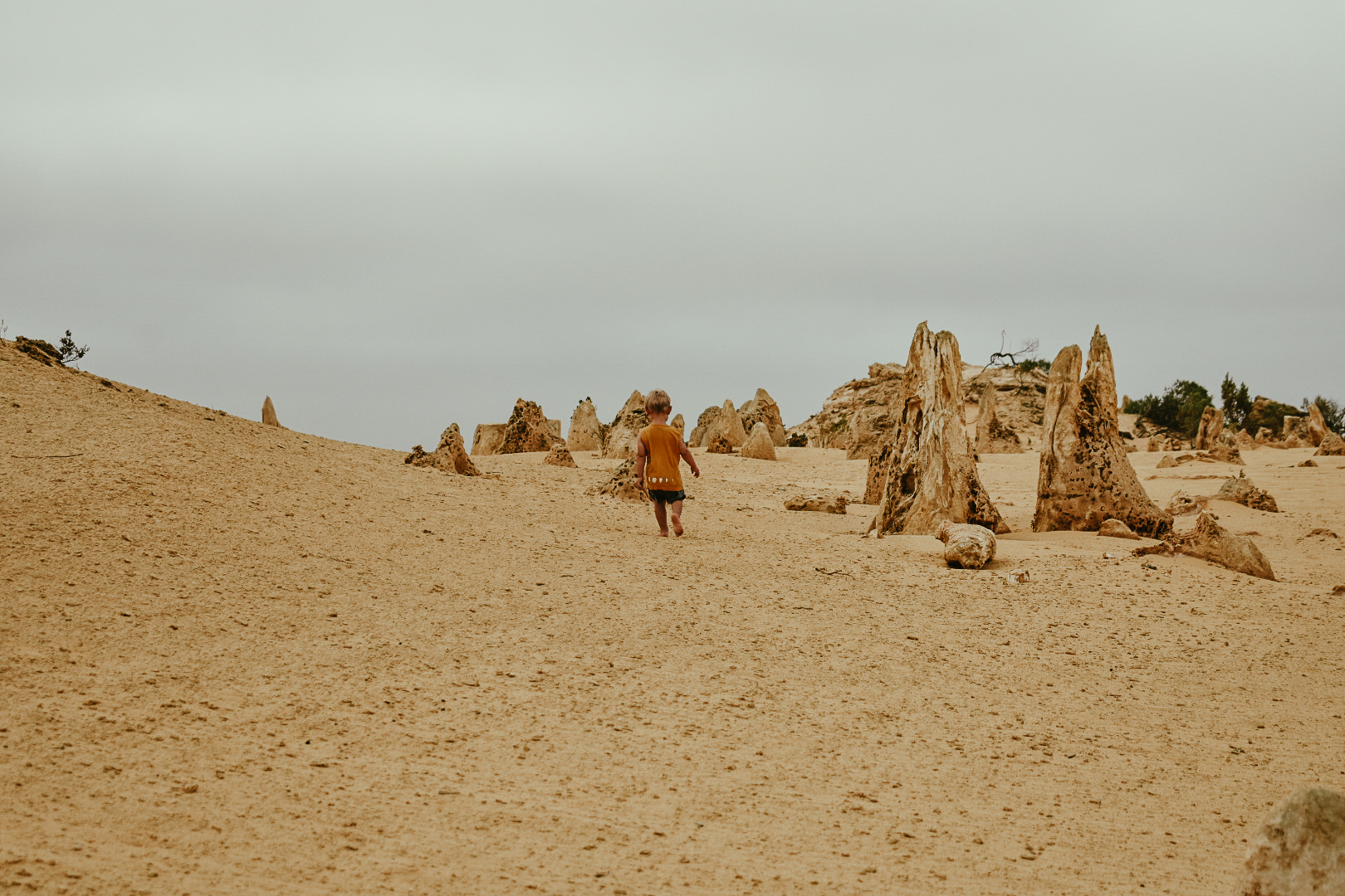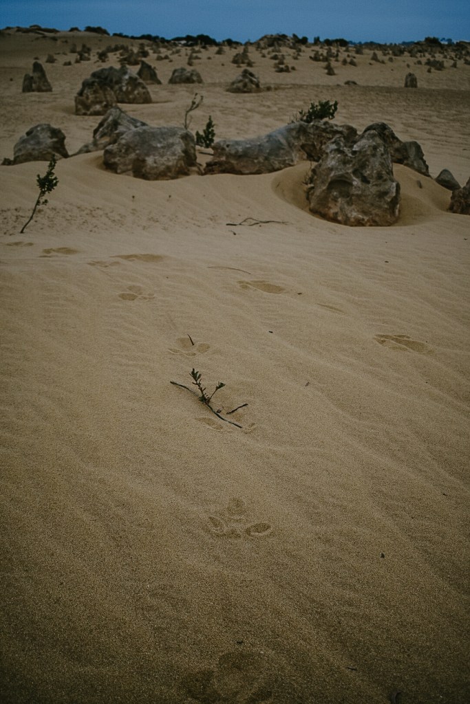 The Pinnacles is only 15 mins drive from Cervantes South on Indian Ocean Drive. You pay $15 per vehicle and The Pinnacle Discovery Centre is open from 9.30am to 4.30pm. Our little tradition to do is grab a pizza from the local cafe in Cervantes or pack a picnic and have dinner at the Pinnacles and watch the sunset into the yellow sand. Take your time driving through, stopping exploring as there are a few lookouts but also plenty of animal footprints to discover, which the kids loved doing. We saw footprints from Kangaroos and Emus. Picture an Emu walking along on this land it would be incredible to witness, hopefully on our next visit.